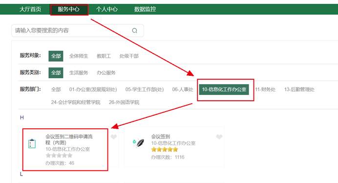 为方便各类会议、集体活动签到,经过广泛的调研,学校基于一站式服务大厅开发了“会议签到二维码申请流程”,经过一段时间的测试、试运行和优化,目前已经具备服务全校师生的能力,现向全校师生开放使用。