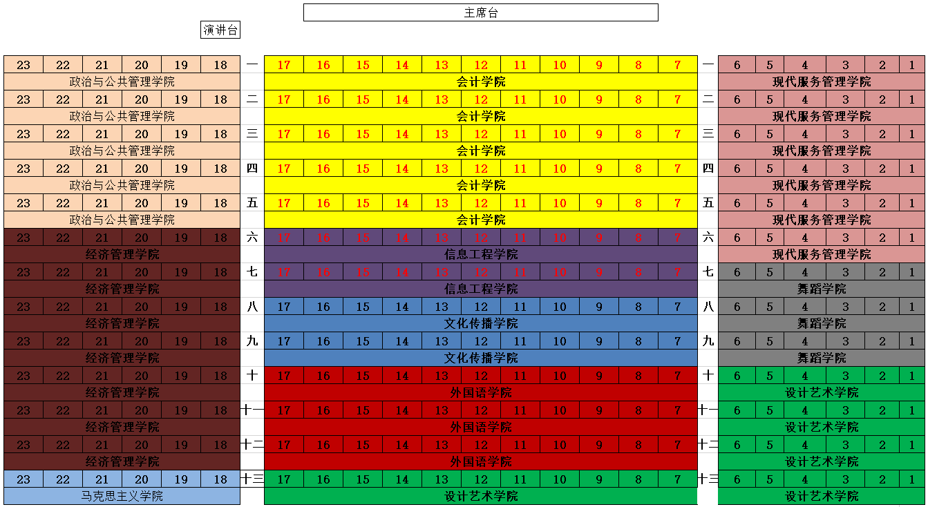 请各学院组织参会学生,提前10分钟入场,按照附件《坐区图》有序就坐,会议期间手机调至静音,保持会场秩序。