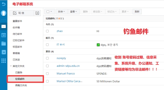 1.学校邮箱后缀为@sdyu.edu.cn,是学校的合法域名,是学校邮箱用户的身份标志信息,用户不应以发件人昵称为身份判别标志。