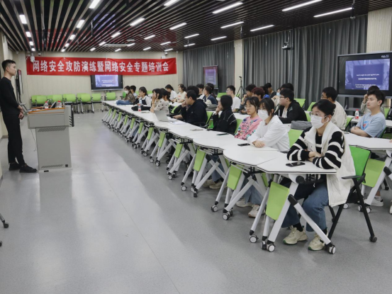 为切实落实好“2023年国家网络教育系列活动”工作部署,增强学生网络安全意识和防患网络安全风险能力,4月20日下午,我校在知行楼智慧教室举办“提升网络安全意识,共筑网络安全防线”专题培训会。会议邀请企业网络安全专家授课,学生工作处、信息化工作办公室、信息工程学院负责同志及网络安全与信息技术协会成员、学生代表参加了本次活动。