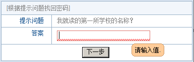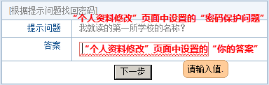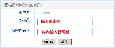 “通过回答问题新设密码”: